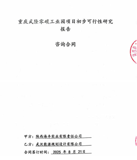 近日,能源设计公司与陕西海丰实业有限责任公司正式签订重庆武隆零碳工业园项目初步可行性研究报告咨询合同。这是能源设计公司多年来在零碳园区技术路线上的重要突破,开启了服务区域“双碳”目标与产业升级的全新实践。