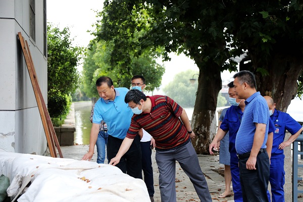 7月17日上午,城投集团纪委书记荣巩,纪委副书记、纪检监察室主任李兆忠等一行到硚口区沿河大道阮家台闸口,慰问天然气公司防汛值守干部职工。
